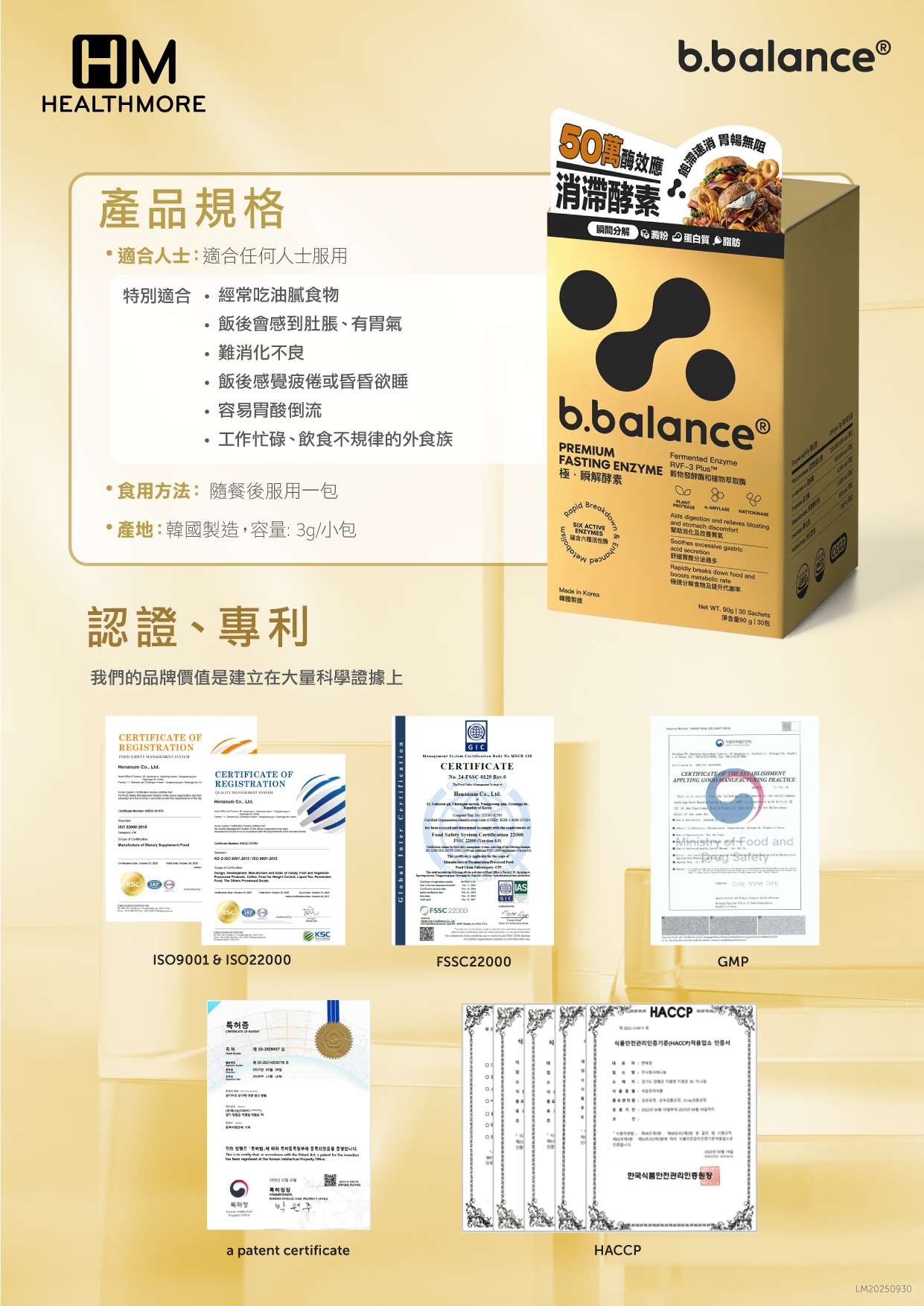 DR REBORN丨網上商店Healthmore b.balance ⁠極・瞬解酵素 30 條 /盒
